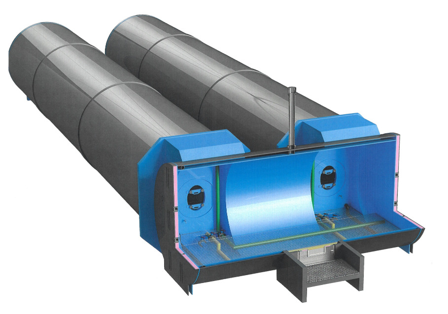 Kulma - 2x 30.000 Liter liegend mit mittiger Trockenkammer und Einstiegsdom
