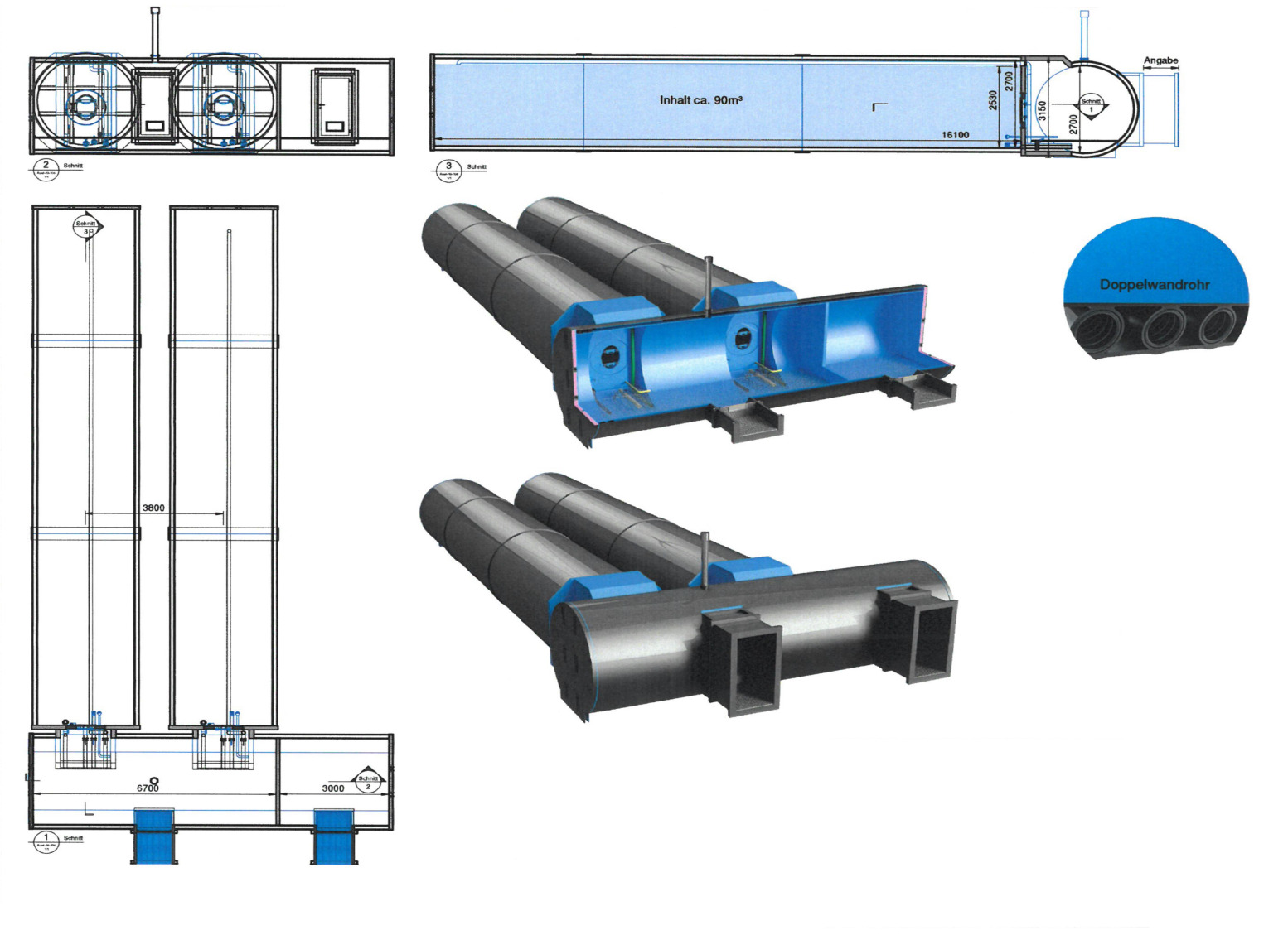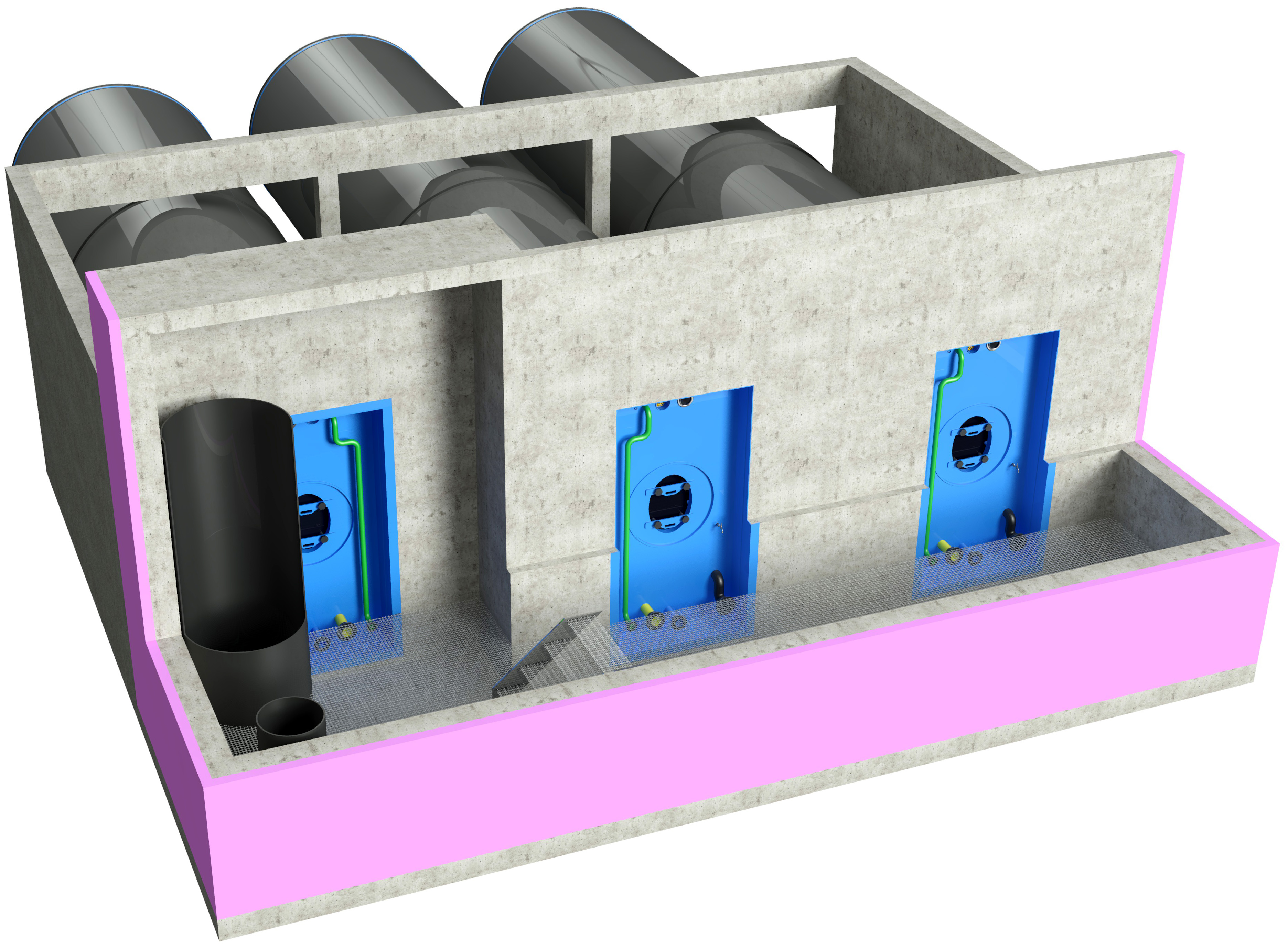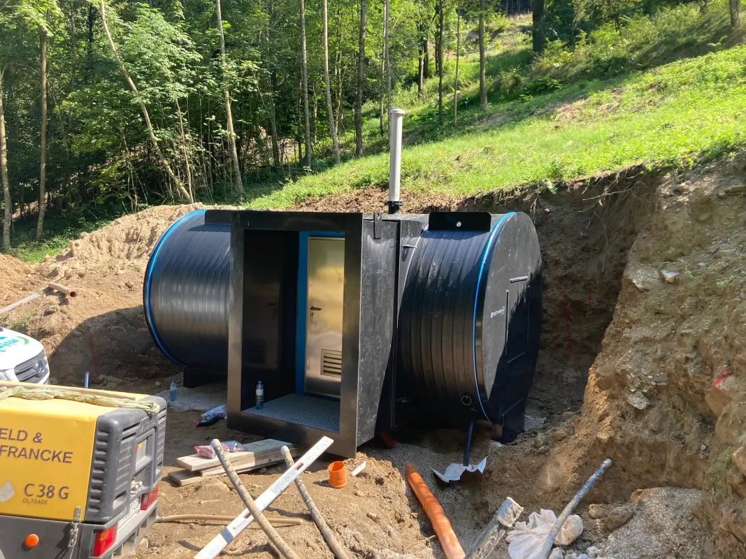 Zirl - 4x 75.000 Liter liegend mit Trockenkammer, Technikraum und Edelstahleingangtür stirnseitig